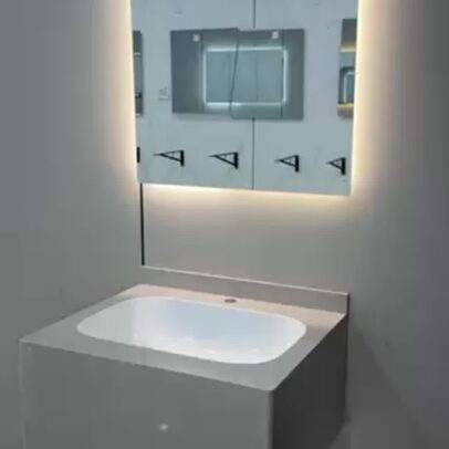 2025 Trend Customize Wall Mounted Sintered Stone Bathroom Vanity Solid Surface Seamless Basin Bathroom Cabinet With Smart Mirror